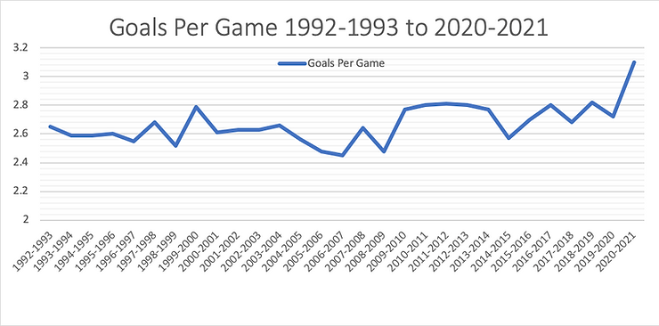 Graph 1-Illustration of Goals Per Game Variances Between 1992/93 to 2020-21